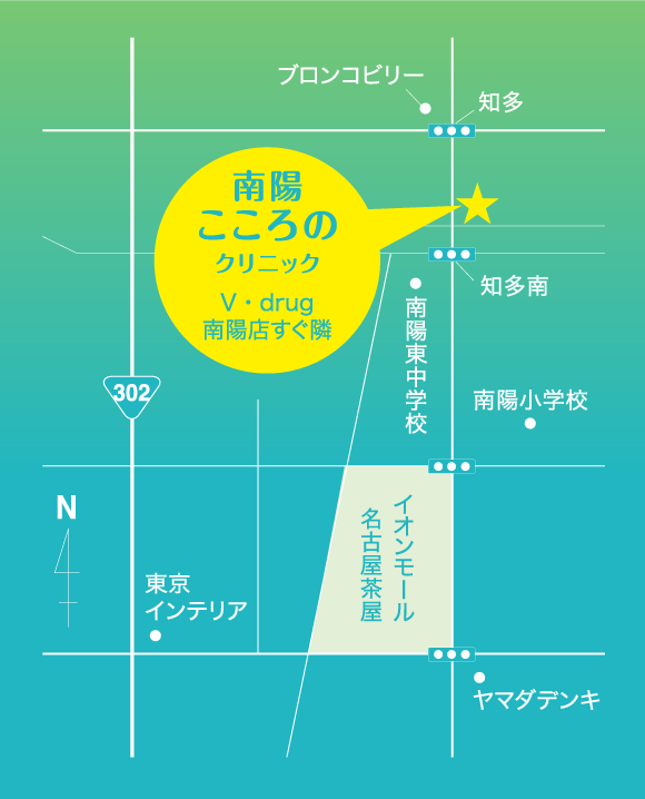 Vドラッグ南陽店すぐ隣・駐車場40台あり、「知多」バス停より徒歩1分、茶屋イオン近く